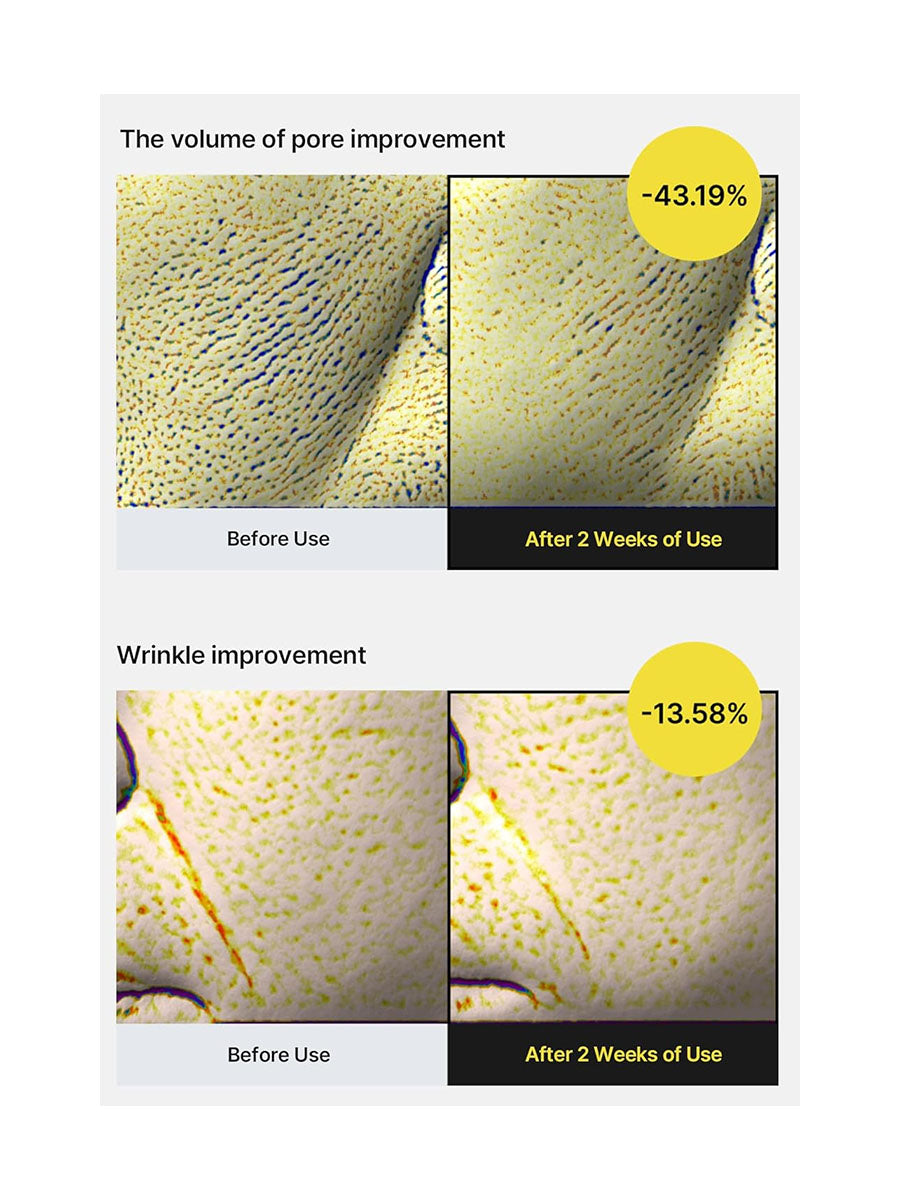 A refined micro-particle ingredient, 16 times thinner than pores, is designed to penetrate directly into pores and enhance the absorption of active ingredients.