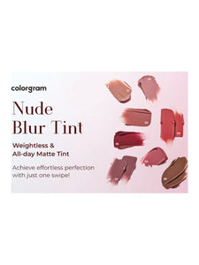 The colorgram Nude Blur Tint is a soft-focus lip tint that provides a smooth, blurred finish with a lightweight, matte texture. Available in 8 flattering nude and neutral shades, this tint enhances your natural lip color while offering a velvety, diffused look that lasts all day. The formula is designed to feel comfortable and non-drying, leaving your lips with a soft, airbrushed appearance without any heaviness.