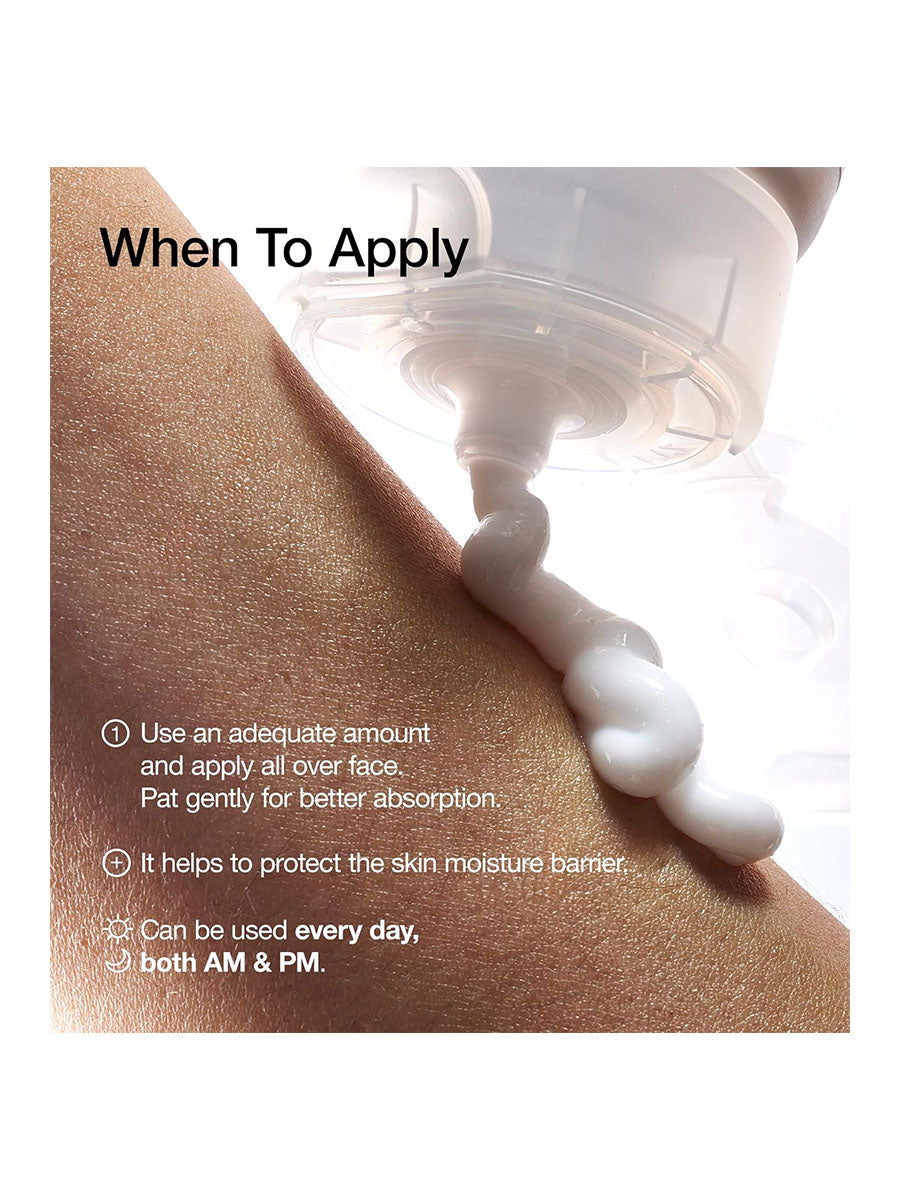 A long-lasting moisturizing facial cream formulated with Panthenol and Ceramides to plump dehydrated skin, while repairing and reinforcing skin barrier function. Boosts hydration and locks in moisture without burdening sensitive and acne-prone skin, while offering soothing relief to irritation skin. Enriched with 4 kinds of Amino Acids that help improve skin texture and repair damaged skin, while soothing redness. A highly moisturizing soft cream that glides smoothly on skin without stickiness. Skin irritation test completed, suitable for sensitive skin.
