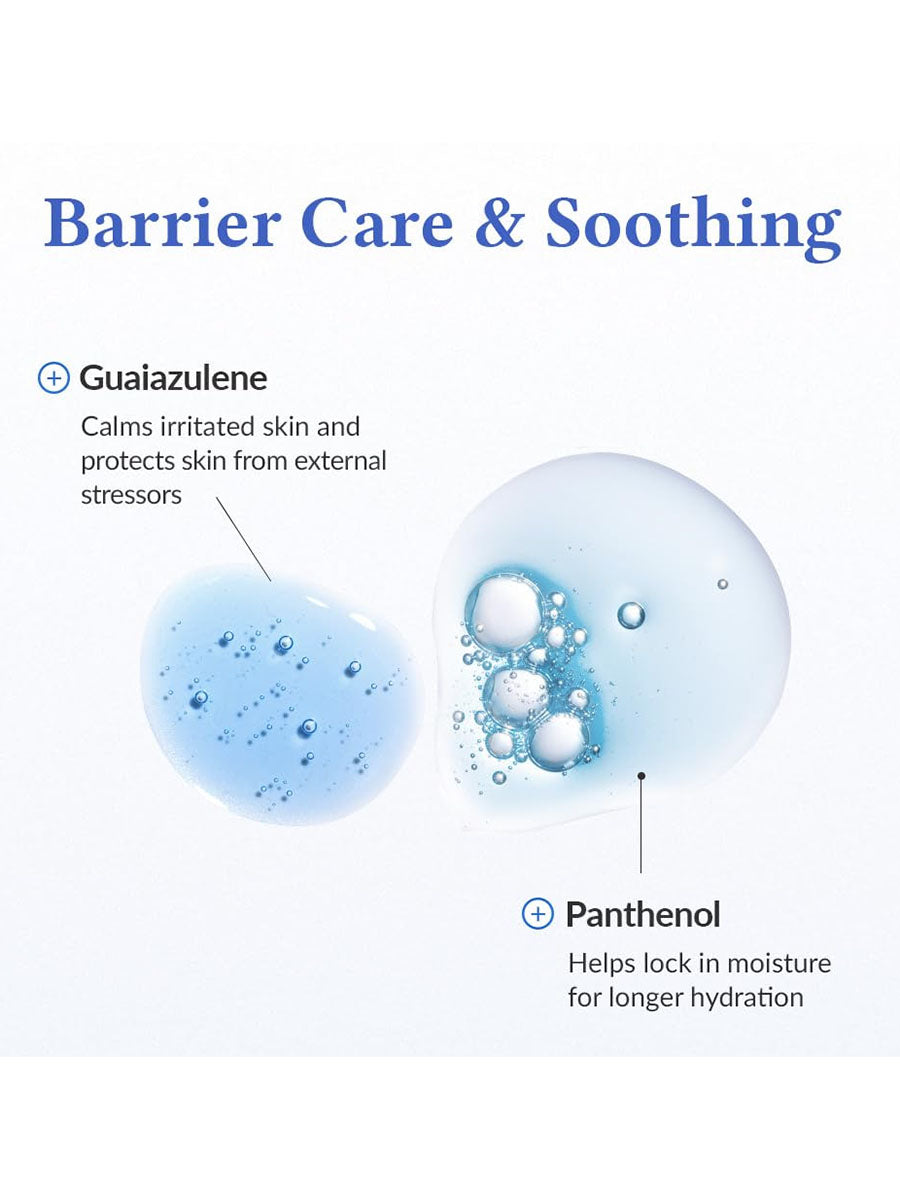 MOISTURE BARRIER & SOOTHING CARE : Panthenol helps lock in moisture and prevent water loss for longer hydration. Infused with Guaiazulene to comfort and calm even sensitive skin from external stressors.