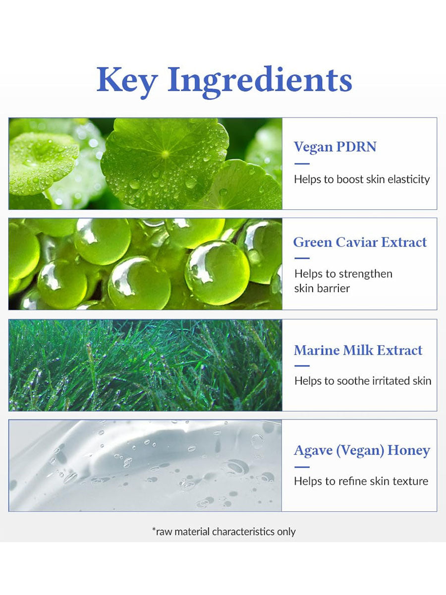 Bambusa Vulgaris Water, 1,2-Hexanediol, Water, Glycerin, Ethylhexylglycerin, Niacinamide, Raffinose, Panthenol, Propanediol, Xanthan Gum, Lactococcus Ferment Lysate, Fructooligosaccharides, Centella Asiatica Extract, Cyperus Rotundus Root Extract, Sodium Chloride, Sodium Hyaluronate, Adenosine, Tromethamine, Carbomer, Disodium Edta, Sodium Dna, Agave Tequilana Leaf Extract, Maltodextrin, Hydrolyzed Gardenia Florida Extract, Hizikia Fusiforme Extract, Sargassum Fulvellum Extract, Laminaria Japonica Extract, Butylene Glycol, Caulerpa Lentillifera Extract, Guaiazulene, Sodium Hyaluronate Crosspolymer, Dimethyl Isosorbide, Oleyl Alcohol, Hydrolyzed Hyaluronic Acid